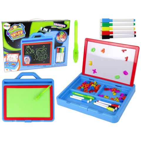 Világító festék 2 az 1-ben mágneses rajztábla Világító Festék 2in1 Mágneses Rajztábla A nagyméretű rajztábla számos előnnyel rendelkezik, amelyek változatossá teszik minden kisgyermek délutánját. A táblán található egy panel a varázsfilccel való rajzol