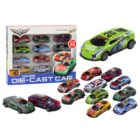 Játékautó készlet, Rugók, Sportversenyautók 1:64, 10 db. Játékautó készlet, Rugók, Sport Versenyautók 1:64, 10 db. A rugókészlet tökéletes játék a kis autó- és versenyrajongók számára. 1:64 méretarányban mind a 10 jármű igazi versenyautónak tűnik, kész