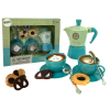 Kávés sütemény szett kék Kávés süteménykészlet, kék Egy kis buli otthon? Talán egy kávézó? Nálunk megtalálod a tökéletes készletet ehhez, gyönyörű türkiz színben. A készlettel gyermeked felnőtt szerepét öltheti magára, vagy elkezdhet pincérnőt játszani
