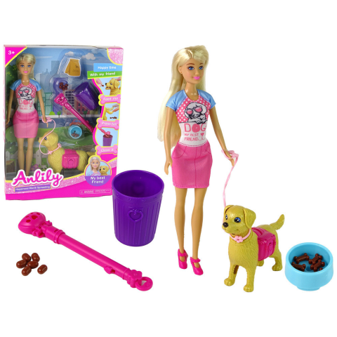 Állat- és ételbaba szett Állateledel-baba készlet A bemutatott készlet ideális kisállat-barátok számára. A játék megtanítja a háziállattal járó felelősséget és a kapcsolódó feladatok elvégzését, mint például a sétáltatás, az etetés és a takarítás. Ezen