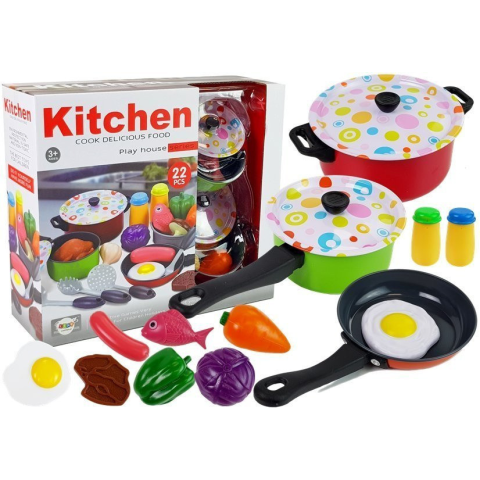 Játék edénykészlet - játék élelmiszer- és edénykészlet, 22 darabos készlet, ajánlott 3 éves kortól Eme LEAN Toys 7390 Játék konyhai edény‑ és élelmiszerkészlet, 22 db termék alapvető paraméterei Egy ilyen Lean Toys játék főzőkészlet motiválja a gyermeket új készségek felfedezésére és a társas kapcs