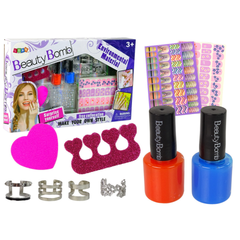 1 kép Lean Toys Körömfestő készlet Körömlakkok Csillogó matricák Gyűrűk