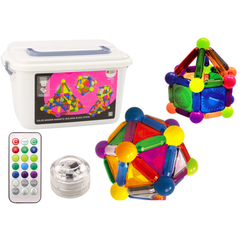 1 kép Lean Toys Mágneses blokkok fénnyel 154 elemből álló dobozban