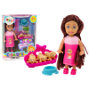 Mini baba hosszú hajú ruha három kutyás ágy Mini baba hosszú hajú ruhában, három kutyával az ágyban. Ez a kis baba három kutyával egy aranyos és kompakt játék, tökéletes azoknak a lányoknak, akik imádják a babákat és az állatokat. A baba színes, gondos