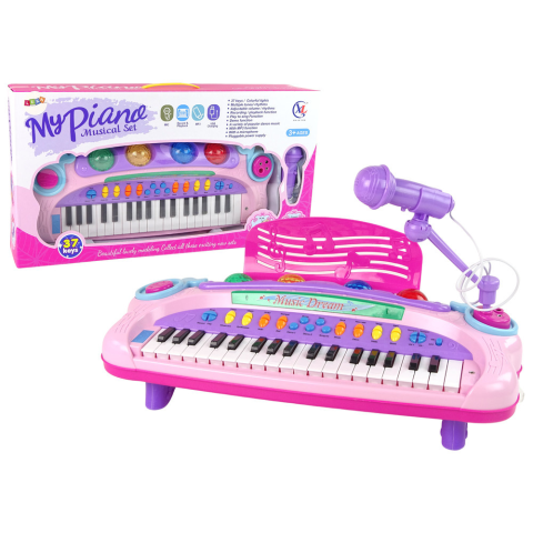 1 kép Lean Toys Pink Multifunctional Interactive Big Musical Baby Piano Microphone MP3