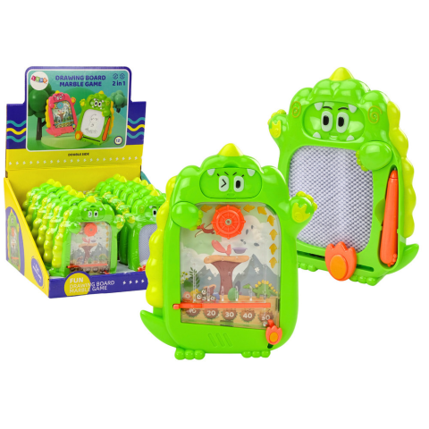 Rajztábla Zsebjáték 2in1 Zöld Dinoszaurusz Rajztábla zsebjáték 2in1 Zöld Dinoszaurusz Egy kétoldalas, zöld dinoszaurusz alakú társasjáték egy tökéletes játék, amely ötvözi a kreativitást az árkád szórakozással. Egyrészt a tábla rajzolásra szolgál, és a