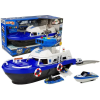 Rendőrségi szállítóhajó autókkal, hangokkal és fényekkel Rendőrségi szállítóhajó autókkal, hangokkal és fényekkel. Fehér és kék színű hajó, rendőrségi matricákkal. Oldalain mentőgyűrűk találhatók, amelyek realisztikussá teszik a játékot. A játék az alj