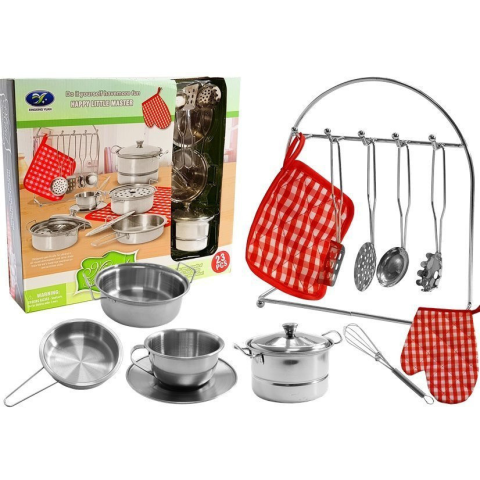 1 kép Lean Toys Rozsdamentes acél edénykészlet gyerekeknek, 23 elem