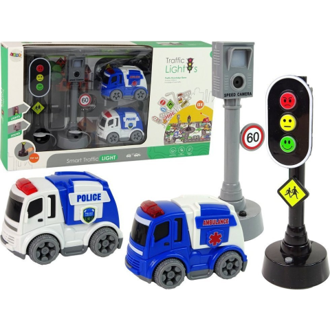 leantoys Autók - Közlekedési Lámpákkal és Útjelző Táblákkal (13628)