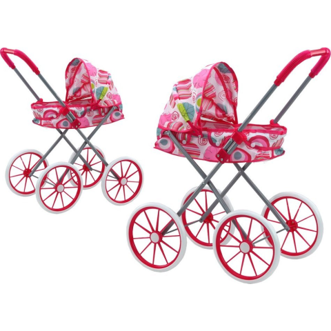 leantoys Babakocsi Nagy Kerekek Összecsukható Rózsaszín Minták (17742)
