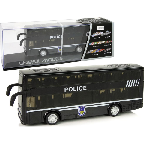 leantoys Emeletes Rendőrségi Busz - Hanggal, Fekete (10030-uniw) autópálya és játékautó 1 kép