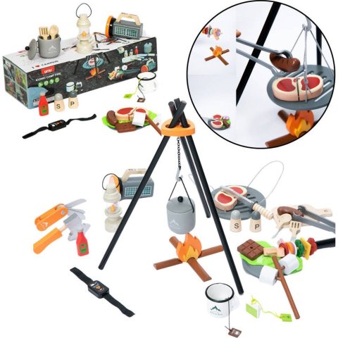 leantoys Fából Készült Kemping Készlet Tábortűz Kiegészítők 45 El. (22033)