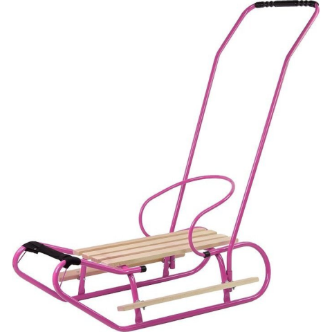 leantoys Fém Szánkó Tolórúddal Háttámla Szíj Rózsaszín (13367) szánkó