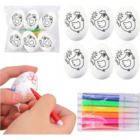 1 kép leantoys Húsvéti Hungarocell Tojások Festéshez Jelölők Tyúk 6db 21338 (21338)