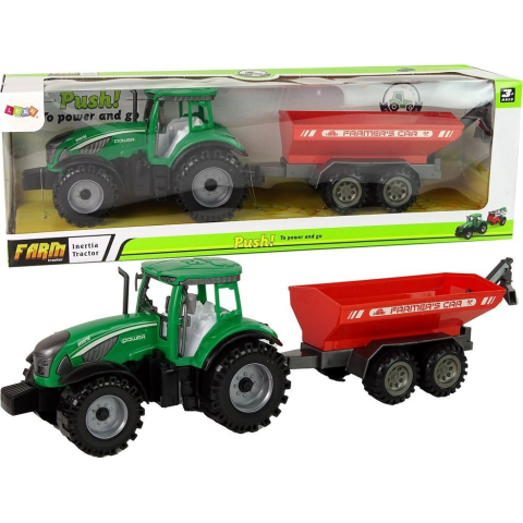 1 kép leantoys Játéktraktor - Piros Pótkocsival, Súrlódó Meghajtással, Zöld (14834)