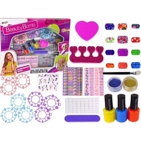 1 kép leantoys Körömfestő Szett - Körömlakkokkal, Matricákkal, Mintákkal, Glitterekkel, Gyerekeknek (12444)