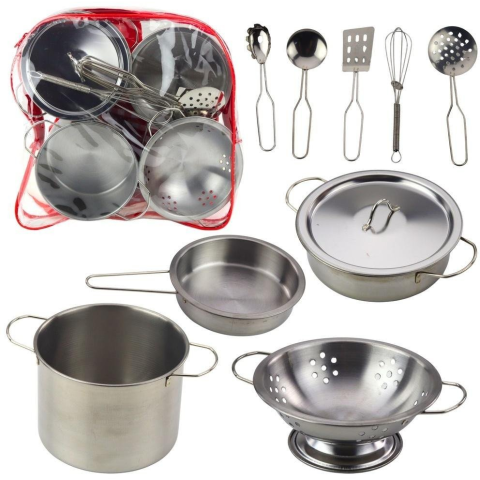 1 kép leantoys Lean Toys Konyhai Edénykészlet Hátizsákban Fém Edények és Kanalak, 12 Darab. (5905991061649)