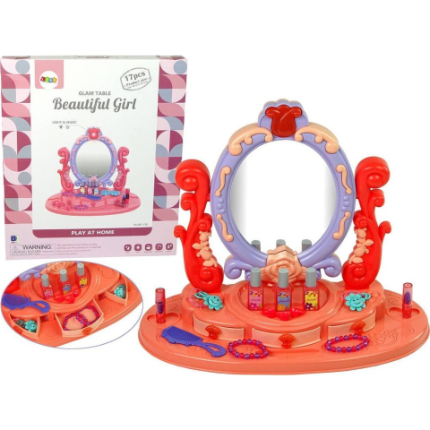 leantoys Sminkpult Tükörrel Fény Hang Rózsa (10831) kreatív és készségfejlesztő 1 kép