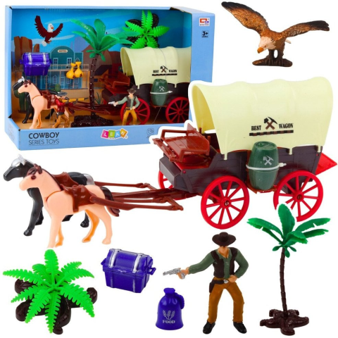 leantoys Szett Cowboy Figurák Western Kocsi Lovak Cowboy Pálmák (24298)