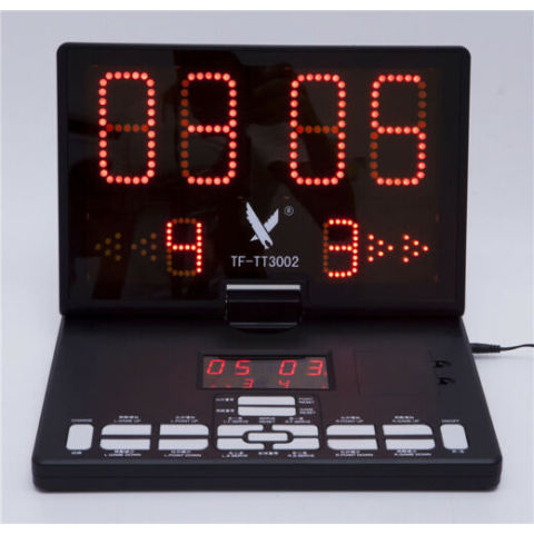 Hálózati adapterről működő többfunkciós asztali eredményjelző kültéri és beltéri használatra labdajátékokhoz (pld. kézilabda, labdarúgás, kosárlabda, asztalitenisz, röplabda).
