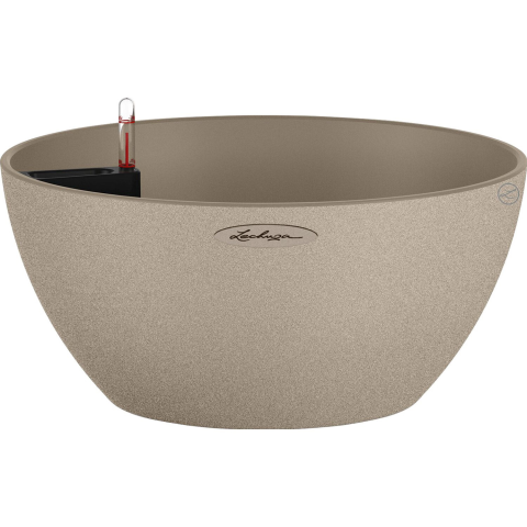1 kép Lechuza Cubeto Stone 30 virágtartó homokbézs 30 cm átmérő