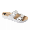 Ledi Anatomic Női Papucs LEDI-202-1. Színe: fehér-ezüstAnatómiailag tervezett, tartós, könnyű, kopásálló PU talp a láb igénybevételeit figyelem be véve készült és rugalmas járást tesz lehetővé. A belső talpbélés puha bőrből készült, komfortos és rugalmas alapot biztosít a fáradt, fájós láb számára. A talpágy kialakítása kényelmes akár 24 órás viselést is lehetővé tesz. A láb nem ég és nem izzad meg viselésk