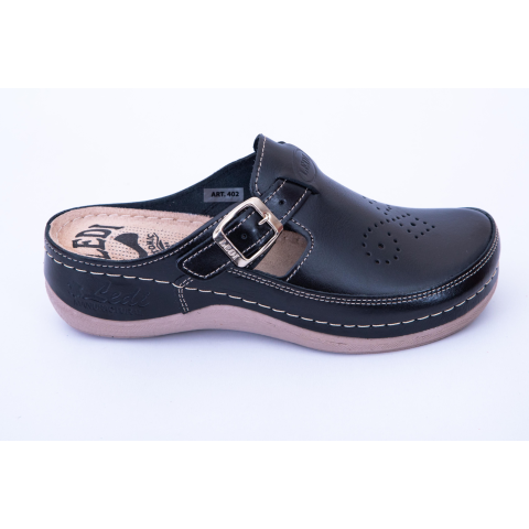Ledi Anatomic Női Papucs LEDI-402-10. Színe: feketeAnatómiailag tervezett, tartós, könnyű, kopásálló PU talp a láb igénybevételeit figyelem be véve készült és rugalmas járást tesz lehetővé. A belső talpbélés puha bőrből készült, komfortos és rugalmas alapot biztosít a fáradt, fájós láb számára. A talpágy kialakítása kényelmes akár 24 órás viselést is lehetővé tesz. A láb nem ég és nem izzad meg viseléskor.
