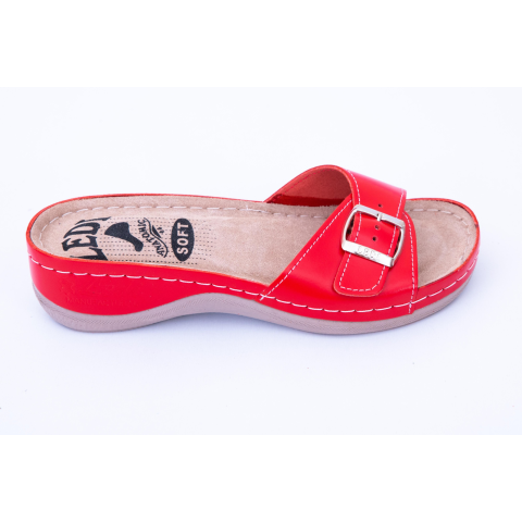 Ledi Anatomic Női Papucs LEDI-407-24. Színe: pirosA belső talpbélés puha bőrből készült, komfortos és rugalmas alapot biztosít a fáradt, fájós láb számára. A talpágy kialakítása kényelmes akár 24 órás viselést is lehetővé tesz. A láb nem ég és nem izzad meg viseléskor. Ajánlott általános viselet utcára, otthonra, fürdőbe, minden korosztálynak, akik kedvelik a merész színválasztást.Metrikus méretezés: 36-41 méreti