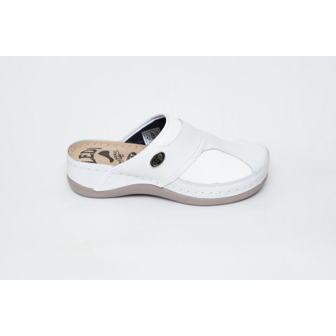 Ledi Anatomic Női Papucs LEDI-429-N1. Színe: fehérAnatómiailag tervezett, tartós, könnyű, kopásálló PU talp a láb igénybevételeit figyelem be véve készült és rugalmas járást tesz lehetővé.A belső talpbélés puha bőrből készült, komfortos és rugalmas alapot biztosít a fáradt, fájós láb számára.A talpágy kialakítása kényelmes akár 24 órás viselést is lehetővé tesz. Sarok fájdalomban szenvedők részére is ajánlo