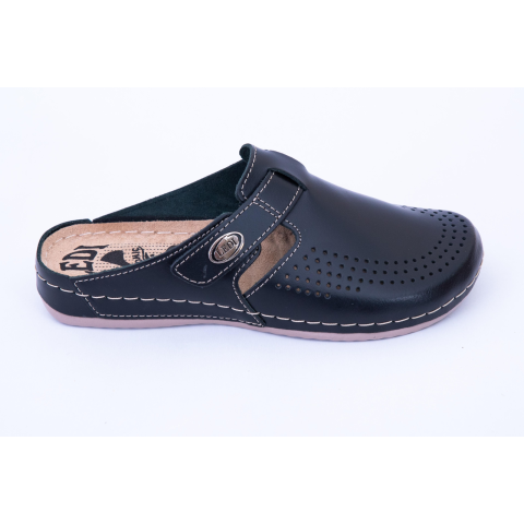 Ledi Anatomic Női Papucs LEDI-710-10. Színe: feketeAnatómiailag tervezett, tartós, könnyű, kopásálló PU talp a láb igénybevételeit figyelem be véve készült és rugalmas járást tesz lehetővé. A belső talpbélés puha bőrből készült, komfortos és rugalmas alapot biztosít a fáradt, fájós láb számára. A talpágy kialakítása kényelmes akár 24 órás viselést is lehetővé tesz. A láb nem ég és nem izzad meg viseléskor. Aj