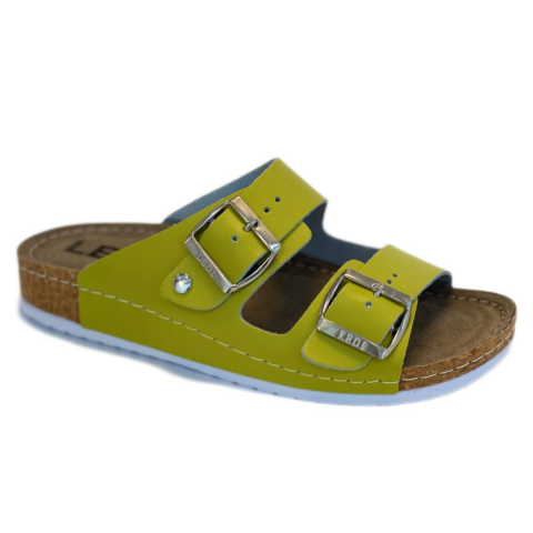 Ledi Anatomic Női Papucs LEDI-92-NEO. Színe: neon sárgaAnatómiailag tervezett, tartós, könnyű, parafa talp a láb igénybevételeit figyelem be véve készült és rugalmas járást tesz lehetővé. A belső talpbélés puha bőrből készült, komfortos és rugalmas alapot biztosít a fáradt, fájós láb számára. A talpágy kialakítása kényelmes akár 24 órás viselést is lehetővé tesz. Sarok fájdalomban szenvedők részére is ajánlott