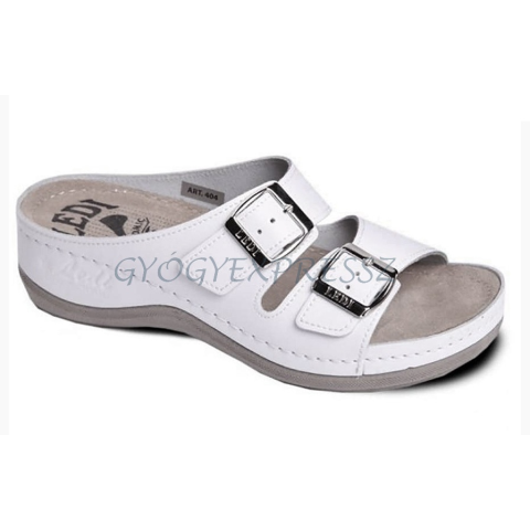 Ledi női papucs Ledi női 2 csatos papucs - Fehér Női bőr 2 csatos papucs, fehér színben, 36-41-ig méretekben vásárolható. Bőrből készült két csatos, állítható felsőrészű papucs, mely minden lábfejformához jól illeszkedik. Ledi papucs tulajdonságok: An
