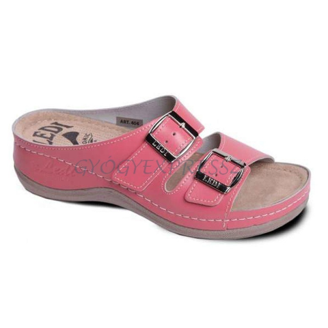 Ledi női papucs Ledi női 2 csatos papucs - Lazac Női bőr 2 csatos papucs, lazac színben, 36-41-ig méretekben vásárolható. Bőrből készült két csatos, állítható felsőrészű papucs, mely minden lábfejformához jól illeszkedik. Ledi papucs tulajdonságok: An
