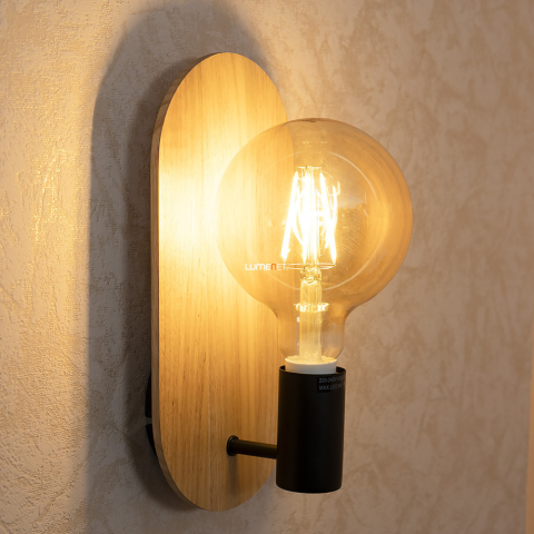 A Ledvance fali lámpa fa hatású (Decor Wood) kivitelben készült, amely természetes fa és fekete színkombinációval rendelkezik. A lámpatest egy darab E27 foglalattal szerelt, amely nem tartalmaz fényforrást, így a felhasználó szabadon választhatja meg a me