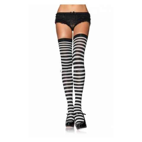 Átlátszatlan csíkos nejlon harisnya a Leg Avenue-tól Pajkos, szexi viselet. Miniszoknyával az igazi! 70 denes szálvastagság. Nagyon sokféle színben kapható normál méretben. Plusz méretben csak a fekete-fehér változat elérhető (ennek ára 1500 Ft-tal több).