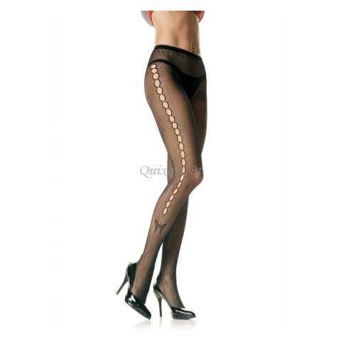 Varrás nélküli neccharisnya boka részen pillangó díszítéssel A lycra anyagból készült harisnya oldalán kulcslyuk minta fut végig. Hasonló, egyedülállóan igényes darabok közül válogathat webáruházunk folyamatosan bővülő kínálatából.