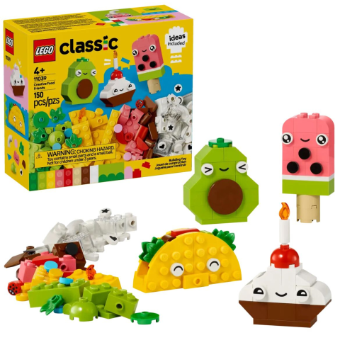 A LEGO® Classic Kreatív finomságok (11039) egy építőkészlet, amely 4 éves vagy annál nagyobb gyermekeknek készült. A rengeteg ételfigurával ez a fantáziadús játék ideális arra, hogy a gyerekek különféle szerepekbe bújjanak. A végtelen sok építési, átépítési lehetőséggel és a szabad építés örömével ez a kezdő építőknek szóló LEGO szett fejleszti a gyerek