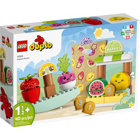 Ismertesd meg a gyerekekkel a bevásárlós játékot, amit a LEGO® DUPLO® Első készletek Biopiac (10983) játék nyújt! Ezzel az aranyos termelői piaccal a gyerekek eljátszhatják a hétköznapi életet, miközben lemérik az ételeket a mérlegeken, különböző értékű é