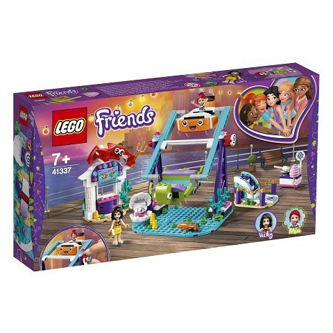 - Irány a kaland a Víz alatti hinta vidámparki játékkal! Segíts LEGO Friends Miának és LEGO Friends Vicky-nek megvenni a jegyüket és felmenni a vidámparki játékhoz vezető lépcsőn! Fordítsd el a gombot, hogy megforgasd és megingasd a székeket, majd nézd meg,
