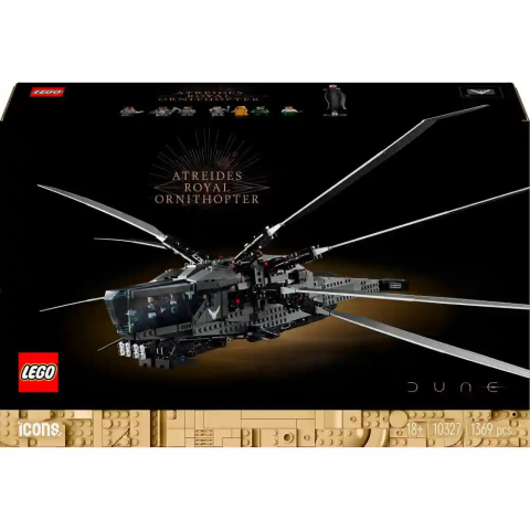 LEGO - felnőttek részére, ajánlott 18 éveskortól, LEGO® Icons sorozat, megjelenés éve 2024, 1369 a csomagban db építőelem található LEGO® Icons 10327 Dűne: Atreides Royal OrnithopterÉpítsünk egy ornitopter modelltÉpítsd mega Dűne című filmben szereplő legendás Atreides ornithopter másolatát. Szállj vele az égbe, és élvezd minden r