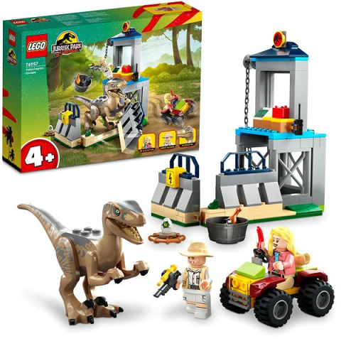 Ezzel a 4 éves kortól ajánlott, klassz LEGO® Jurassic World Velociraptor szökés (76957) játékkészlettel a fiatalok megtanulhatnak építeni és játszani. Az ikonikus Jurassic Park jelenet ihlette készlet egy dinoszauruszkarámot tartalmaz toronnyal, valamint