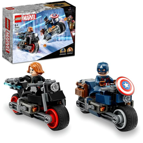 Keltsd életre az ikonikus akciókat a LEGO® Marvel Fekete Özvegy és Amerika Kapitány motorkerékpárok (76260) szettel! A Bosszúállók: Ultron kora című Marvel Studios film jelenete alapján készült motorozó szuperhősök végtelen, fantáziadús kalandra repítik a