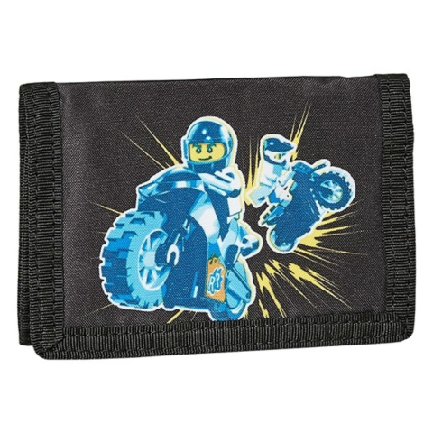 Pénztárca, tépőzáras, LEGO City Race, fekete-mintás A LEGO összehajtható tépőzáras pénztárcája igazán praktikus! -méret (csukva): 9 x 13 cm (szé x ma) -méret (nyitva) 25,5 x 13 cm (szé x ma) -űrtartalom: 0,25 l -súly: 40 g -anyag: 600D Pux2 (nem rPET