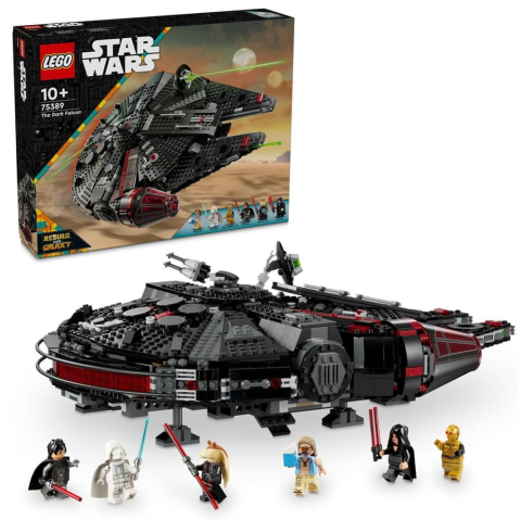LEGO - gyerekek részére, ajánlott 10 éveskortól, LEGO® Star Wars sorozat, megjelenés éve 2024, 1579 a csomagban db építőelem található LEGO® Star Wars™ 75389 Sötét sólyomFedezd fel a csodálatos univerzumot fejjel lefeléA világ a feje tetejére áll! Ismerd meg az ikonikus Millennium Falcont úgy, ahogy még soha nem találkoztál vele. LEG