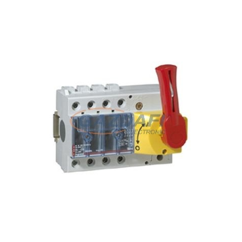 1 kép LEGRAND 022312 Vistop 63A 3P mellső, piros kar/sárga fedlap, terhelésszakaszoló kapcsoló sínre
