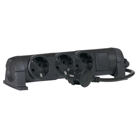 1 kép LEGRAND 694601 Elosztó 3 aljzat 1.5m fekete kapcsolós