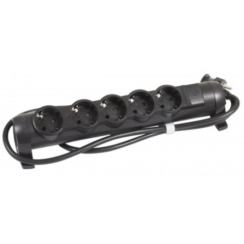 1 kép LEGRAND 694607 Elosztó 5 aljzat 1.5m fekete kapcsolós