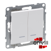 Csillárkapcsoló jelzőfénnyel IP44 10 AX - 250 V~Alacsony fogyasztású (0,125 mA) LED lámpával szállítva (764526)Fehér Suno - IP44-es csillárkapcsoló (105), jelzőfénnyel, burkolattal Mechanizmusok fém süllyesztőperemmel és billentyűvel együtt szállítva Rög