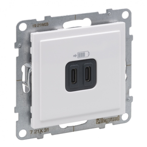 1 kép LEGRAND 721131 Suno 2xUSB-C csatlakozóaljzat, 3 A - 15 W, fehér