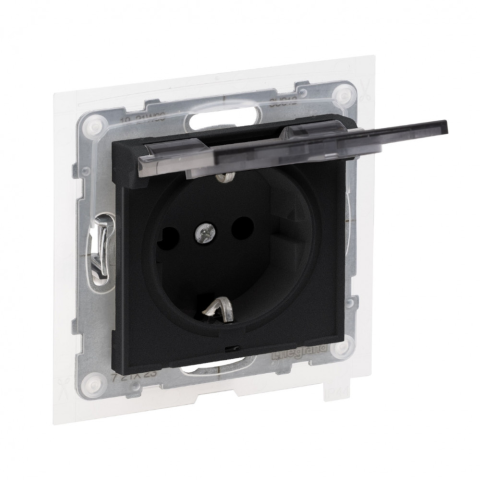 1 kép LEGRAND 721423 Suno 2P+F dugalj csatlakozóaljzat (rugós), biztonsági zsaluval, IP44, fekete